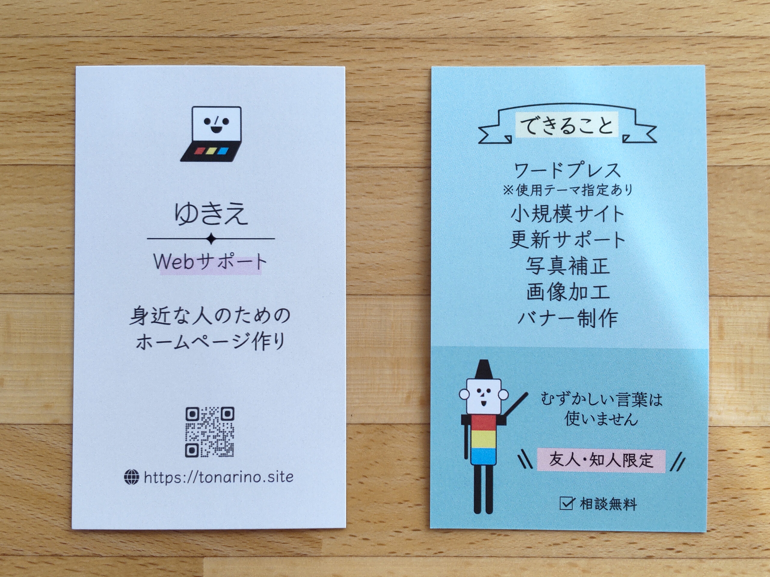 とりあえず、このサイトと共に、名刺も作ってみました(#^^#)
